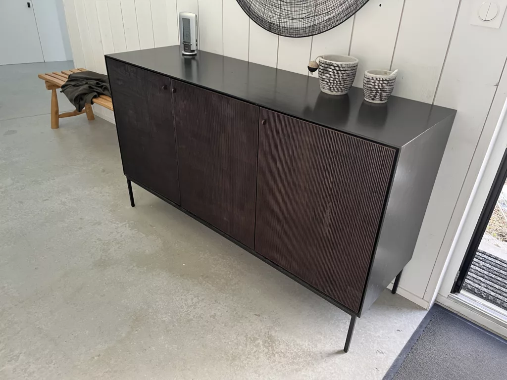Meuble en chêne teinté venge avec 3 portes sur charnières