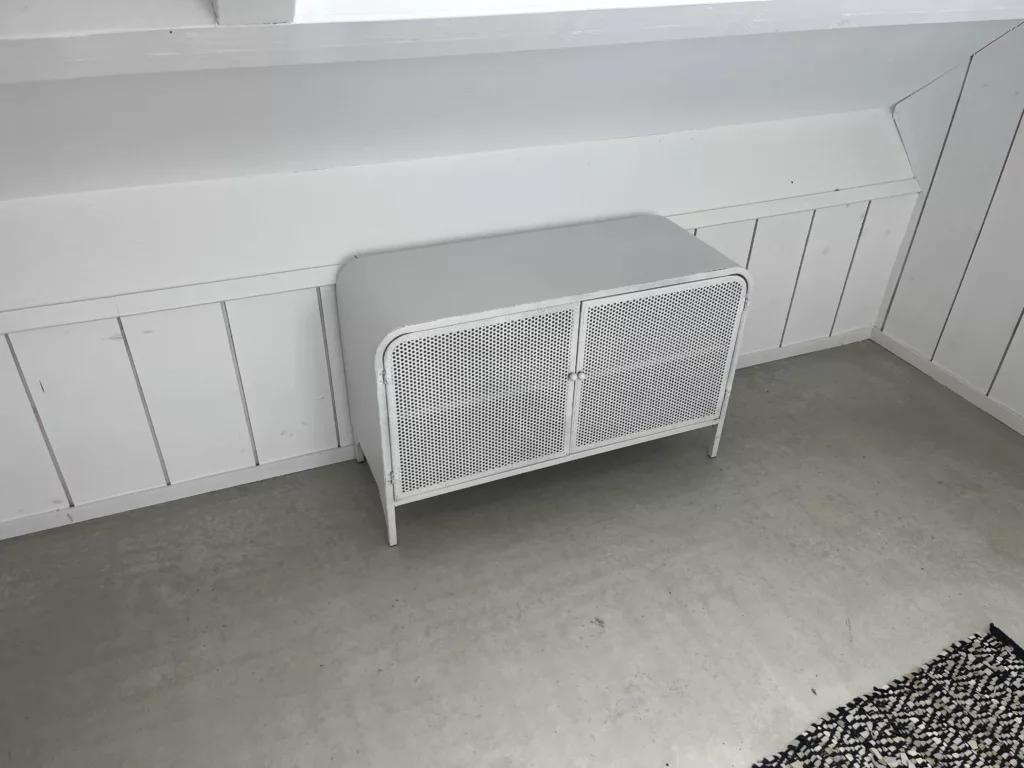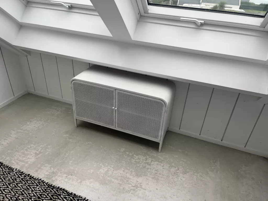 Ces 2 petits meubles blancs peuvent être des rangements complémentaires de chambre.